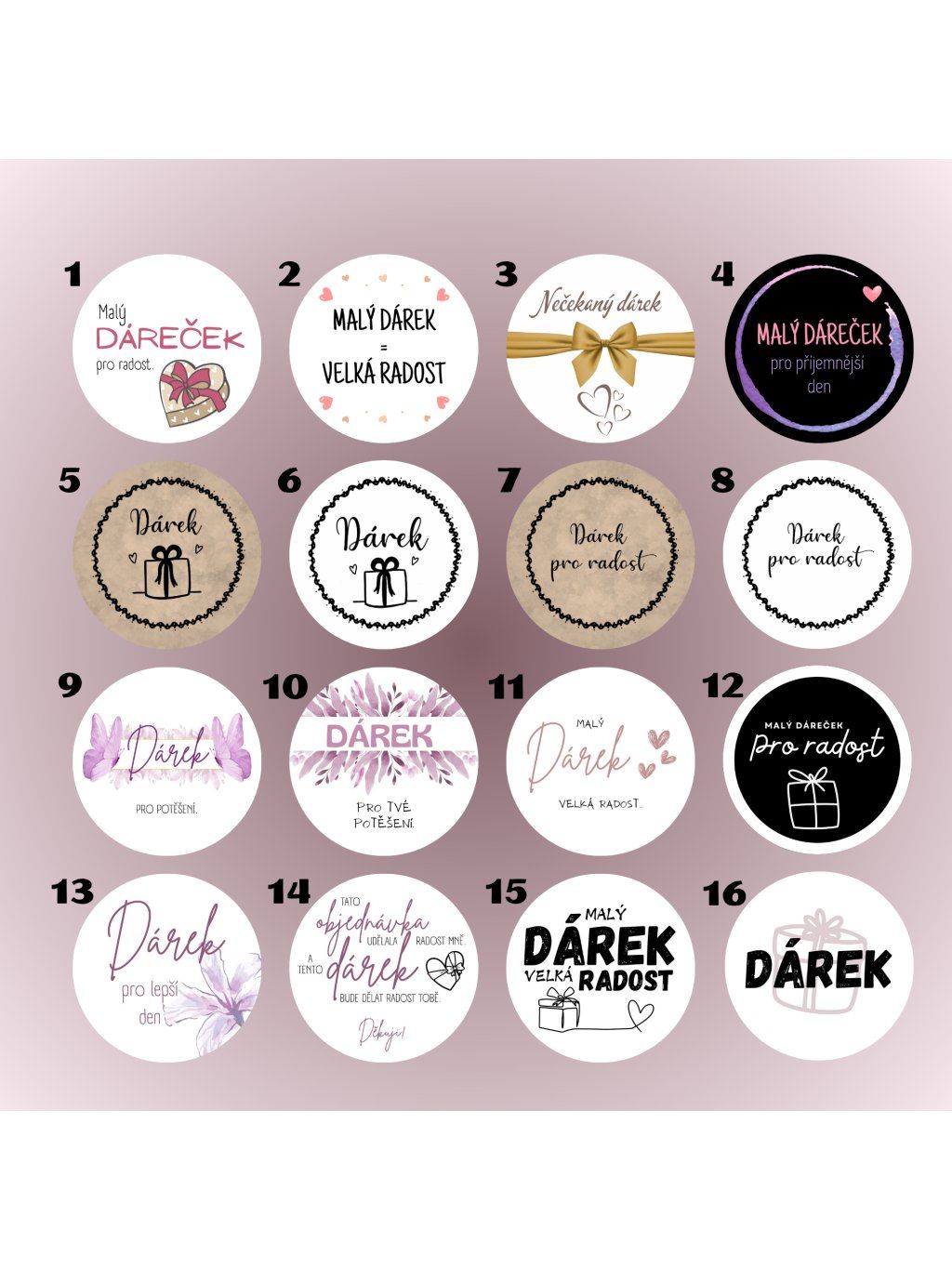 Samolepky jsou tištěný na arch A4, v kulatém rozměru a ve vámi zvolené velikosti.