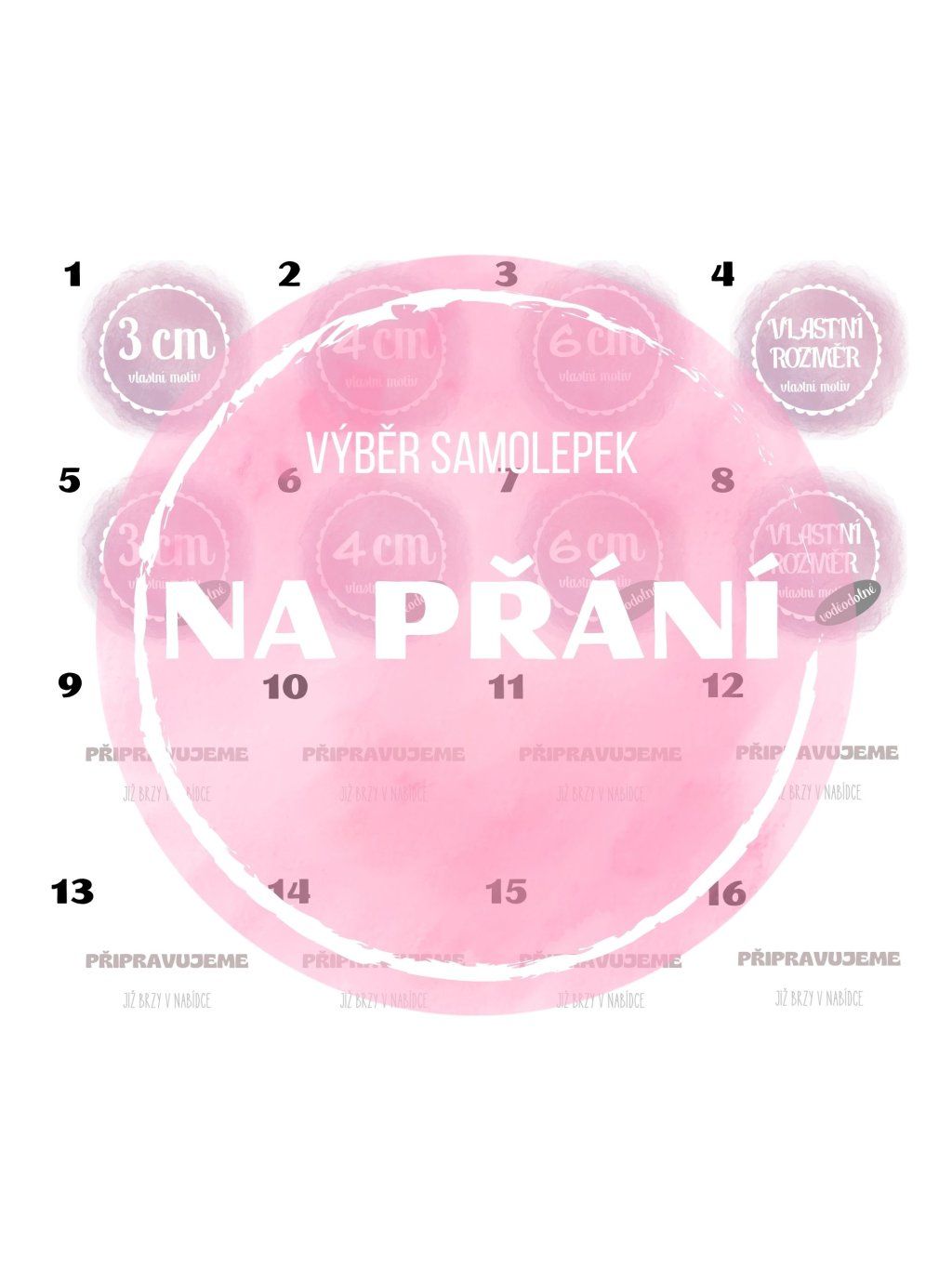 Samolepky jsou tištěný na arch A4, v kulatém rozměru a ve vámi zvolené velikosti.