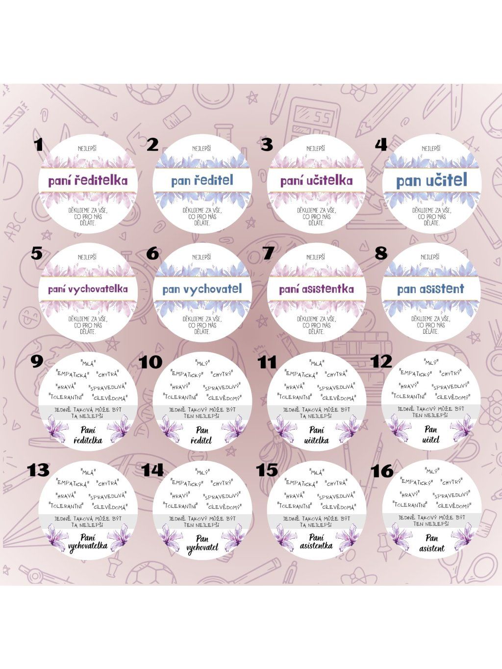 Samolepky jsou tištěný na arch A4, v kulatém rozměru a ve vámi zvolené velikosti.