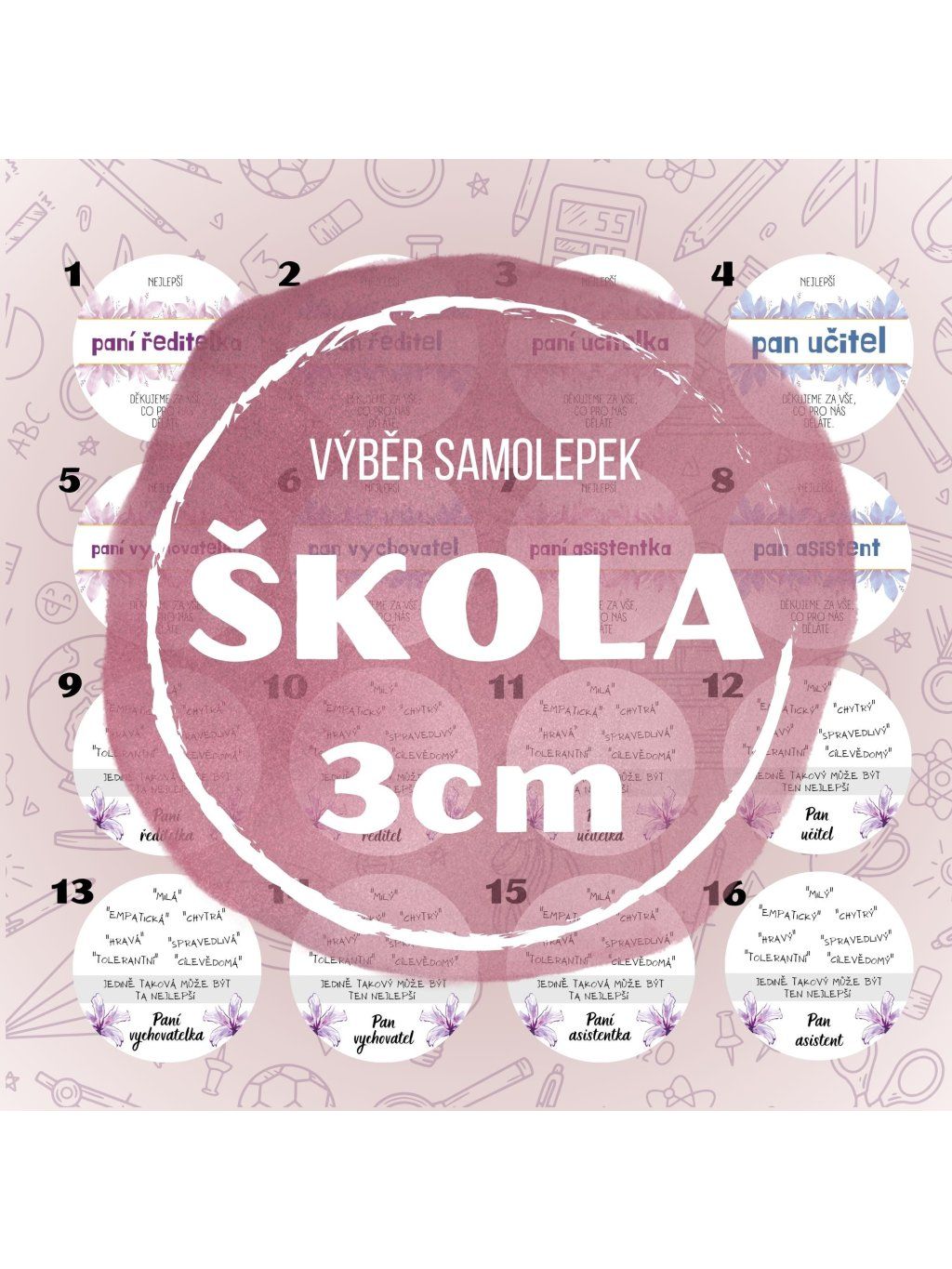 * 3cm - 54ks samolepek na archu